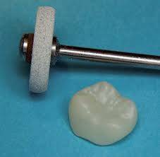 De cementresten van de definitieve kroon wordt verwijderd.